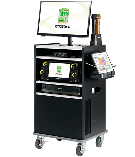 「JOYSOUND X1」は、音楽療養コンテンツ「健康王国」を搭載し、約1,300種類以上※の多彩なコンテンツで、楽しみながら健康維持・QOL向上に取り組めると同時に、業務効率化・サービスの質の向上などを支援します。健康王国をより便利に活用するための機能が充実。「JOYPadキョクナビ」を採用するなどユーザーインタフェースも向上し、どなたにでも簡単にご使用いただけます。カラオケ専用生音源「X-LebenⅡ」の搭載により音質面が向上。また、ほぼすべての曲が歌声入りで利用可能になるなど、歌唱機能も大幅にパワーアップ。新たな機能として、楽しく脳活クイズが行える「脳トレアプリ」「おまかせプログラム」を搭載しました。