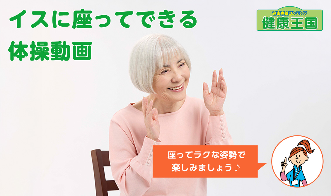 座ったままで出来る簡単な手指の動きを中心に理学療法士監修のもと筋力トレーニングやストレッチを始め、頭の体操にもなるコンテンツです。
