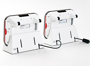 バッテリーチージャー「JR-300BC」に同梱されているケーブルで連結充電が可能。JR-P2000/P3000との連結もできます。